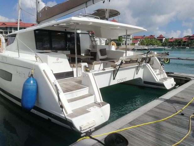 This catamaran can accommodate up to 10 people in 4 double cabins and a saloon with 2 extra beds.